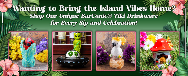 Need to stock up your Tiki Bar? This is a great package, that comes with four unique mugs, palm tree stirrers, and neon straws. Feel your island vi...